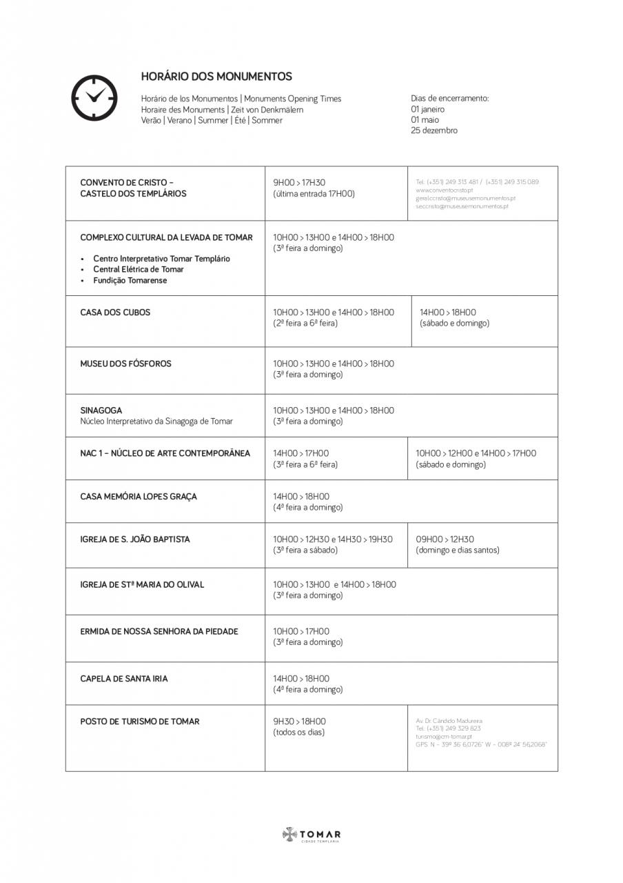 Horário dos Monumentos - 1 de abril a 31 de maio 2026